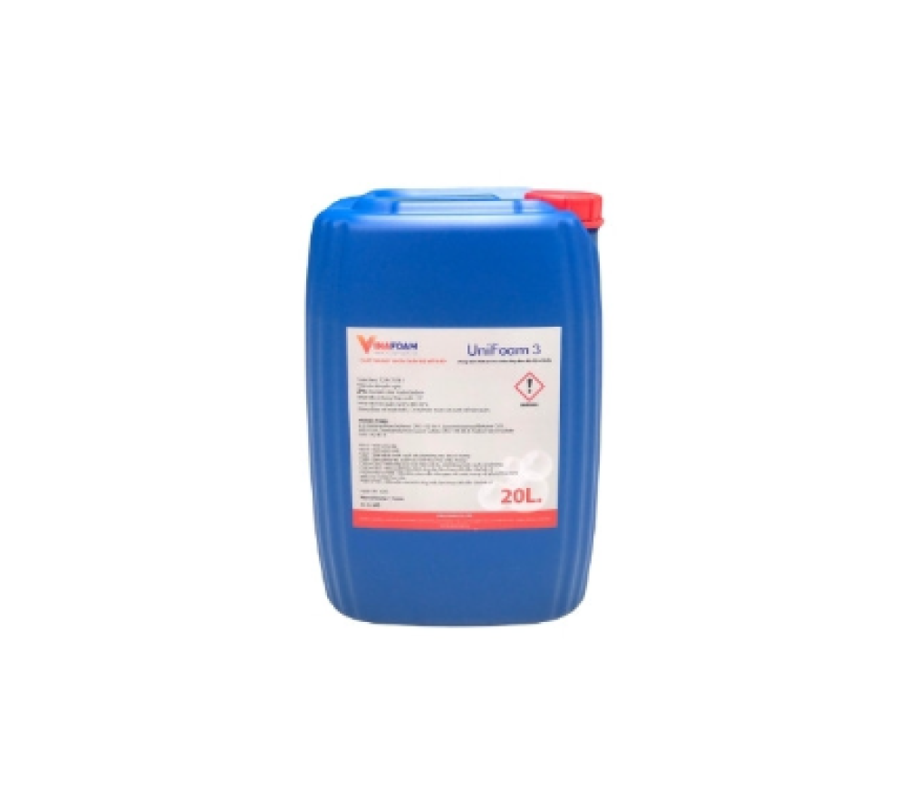 UNIFOAM 3 có thành phần là dung môi hữu cơ, các chất hoạt động bề mặt hydrocacbon và các chất phụ gia tính năng khác. UNIFOAM 3 không chứa bất cứ hợp chất hữu cơ có gốc halogen nào, sản phẩm bọt cô đặc hay dung dịch bọt có thể dễ dàng phân huỷ sinh học và thân thiện môi trường.